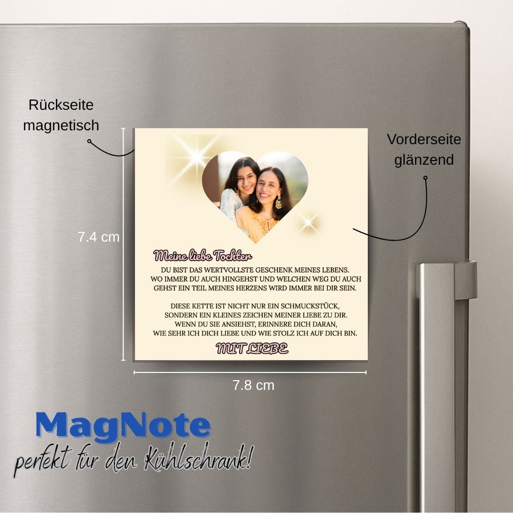 Die MagNote sind magnetisch und können z. B. an deinem Kühlschrank oder jeder Metalloberfläche angebracht werden – so bleibt deine liebevolle Botschaft immer sichtbar.