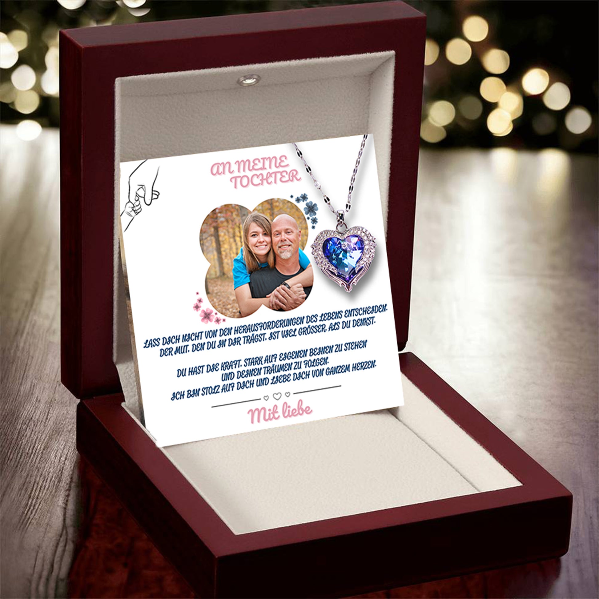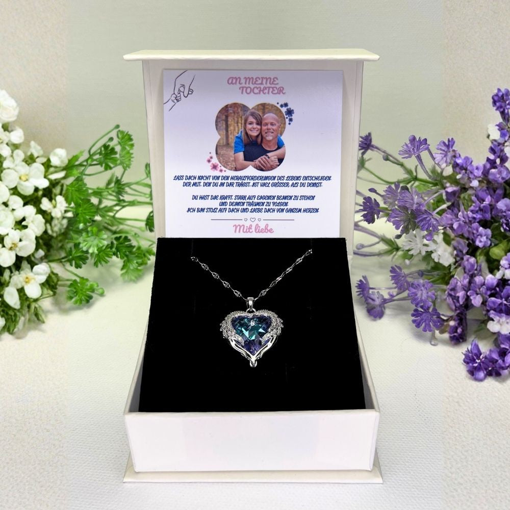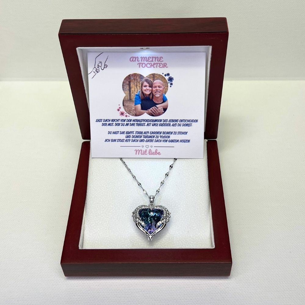 An meine Tochter – Ozean Herz Halskette & MagNote mit eigenem Foto